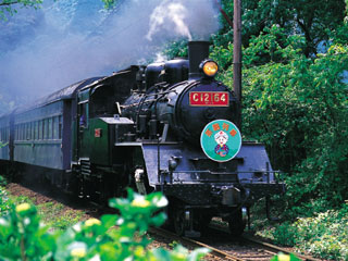 茶畑や櫻並木、アカシヤ並木、赤く染まったもみじの中を勇壮に走るSL列車は、見るも良し、乗るも良し・・・ |