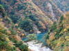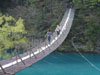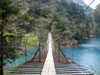 長さ/90m・高さ/8mの吊橋を渡る時は、10m前方に視線をおき、吊橋のゆれあがった時に足をおろすとタイミングよく渡れます。是非一度チャレンジしてください。 |